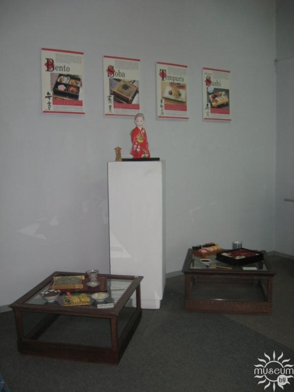 На выставке "Традиции и культура Японии" было представлено около 100 предметов: традиционные японские куклы Хаката-нингё и Кё-нингё, архитектурно-ландшафтные макеты японских храмов и замков - исторических памятников, включённых в список всемирного наследия ЮНЕСКО, предмета гордости японцев, а также демонстрировались наборы предметов для чайной церемонии, муляжи блюд национальной японской кухни - суси, бэнто, соба и тэмпура, коллекции воздушных змеев и масок. Самый яркий экспонат - свадебное женское кимоно учикакэ, которое невеста надевала на церемонию бракосочетания поверх более лёгкого кимоно. Любой желающий мог узнать о Японии и её национальных традициях из журналов и книг, предоставленных представителем Посольства Японии в Республике Беларусь, а также из небольшого видеоролика.